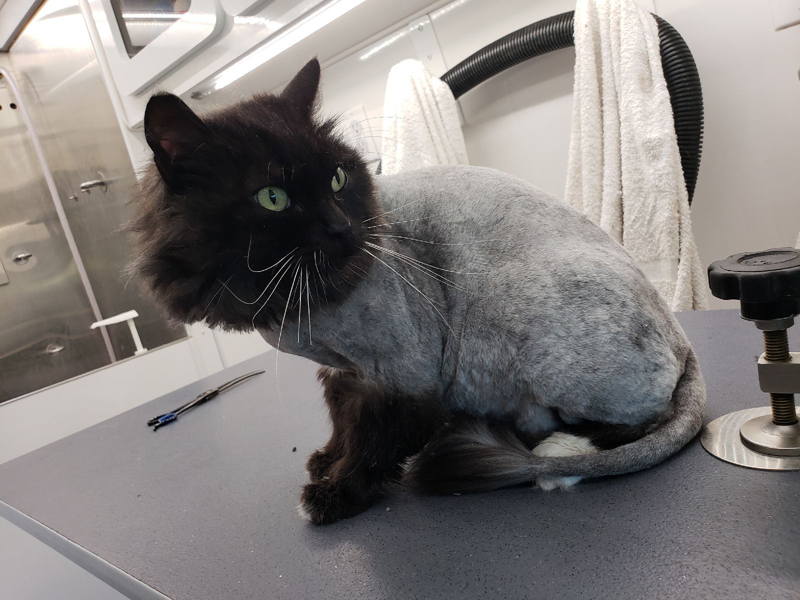 Lion Cut (short length on the body, longer edge of the tail, paws and longer mane)